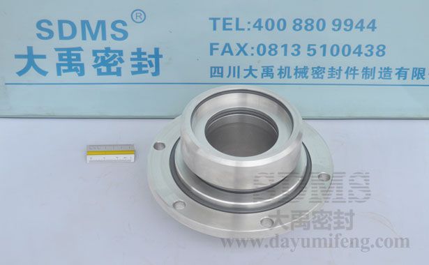 ? ? ? SDMS-80S機械密封只能用于含顆粒較少的場合,如某廠含砂重油泵,含砂量3%左右。顆粒太多時,容易在動 環(huán)密封圈處阻塞,使動環(huán)失去浮動性。該圖左面的端面與介質(zhì)接觸,設計成靜止內(nèi)流式,顆粒不易進入摩擦副,動、靜環(huán)的密封圏也得到了保護。另外用沖洗液進行沖洗,中間充封液進行“封堵”,使顆粒破壞機械密封的可能性減到最小。